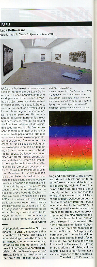Using objects and cultural products, Luca Dellaverson examines the simultaneous construction and deconstruction of our frames of reference in our constantly changing society. His works merge an intangible dimension – video imagery, LCD screens, sound, inkjet printing – with a powerful materiality in his choice of media.